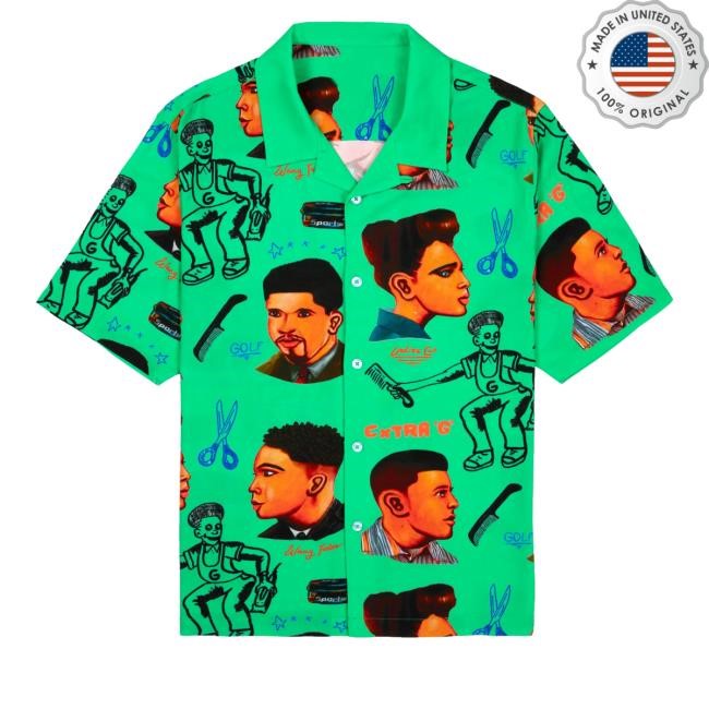 Barbershop Rayon Button Up Hooded Sweatshirt By Golf Wang Our Style: Men T Shirt, Women T Shirt, Long Sleeves, Hoodie, Sweatshirt T Shirt design, custom t shirts, graphic tees, custom t shirt design.