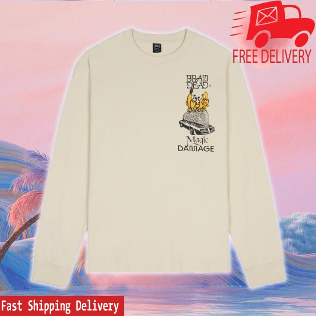 Official Weare Brain Dead Merch Store Magic Damage Hoodie Sweatshirt – Grey Wearebraindead Shop